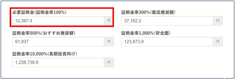 110円 × 10万通貨 ÷ 888倍 = 12,387円