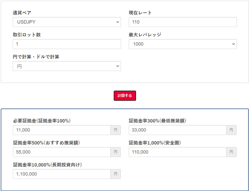レバレッジ計算は手計算でもそんなに難しくありませんが、面倒な人は上でも紹介した海外FX