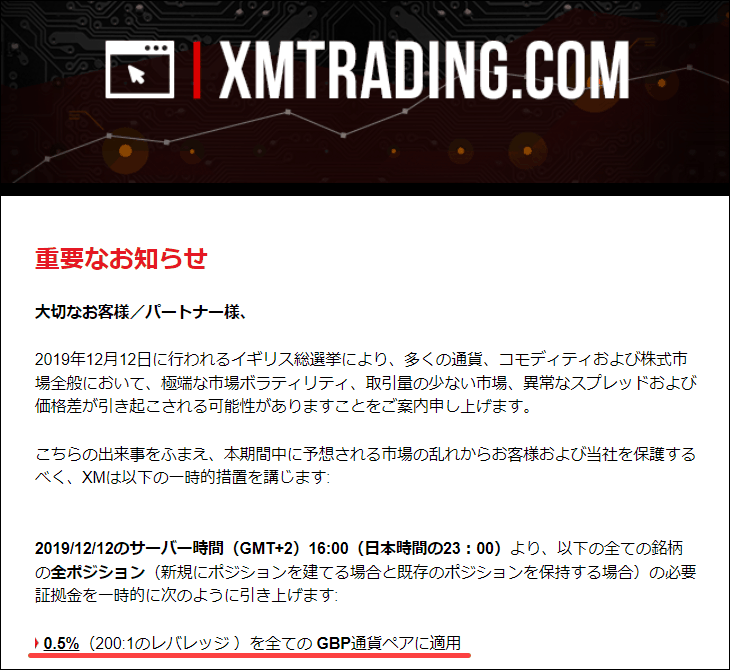 各業者で事前にメールが入りますが、XMなどはレバレッジが100倍まで大きく規制が入ります。