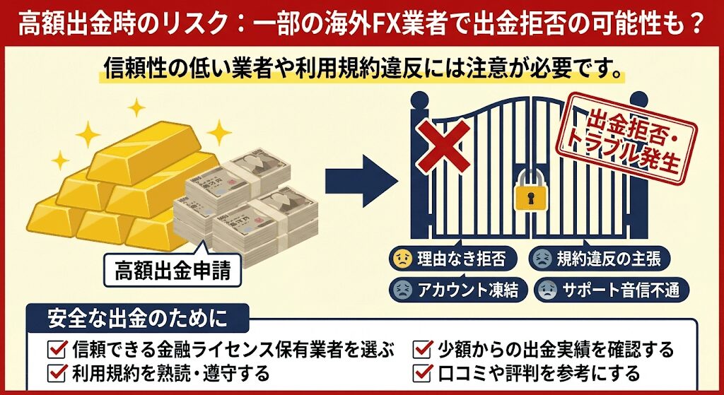 高額出金になると出金拒否になる可能性のある業者