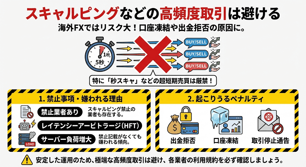 スキャルピングなどの高頻度取引は避ける