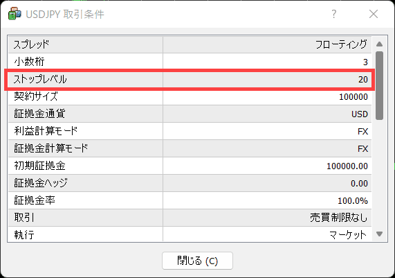 ※MT4の通貨ペアを右クリック→仕様から確認できます