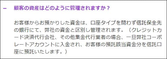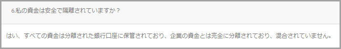 また、信託銀行という責任ある第三者が顧客資産を管理するによって、顧客の資金が不正に流用されるリスクも抑えることが可能になり、信頼性を高く保てるシステムとなっています。