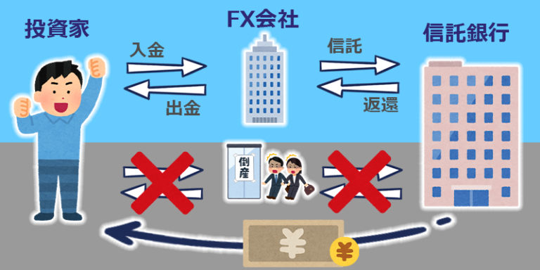 このシステムによって、投資家が資産を預け入れた海外FX業者が倒産しても、信託銀行から投資家のもとへ資金が返ってきます。