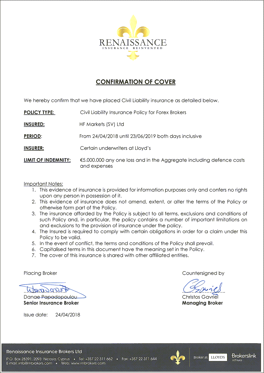 HFMの入っている「民事賠償保険制度」は倒産に対する補償だけでなく、エラーや過失、詐欺などの金銭的損失に対しても補償されています。