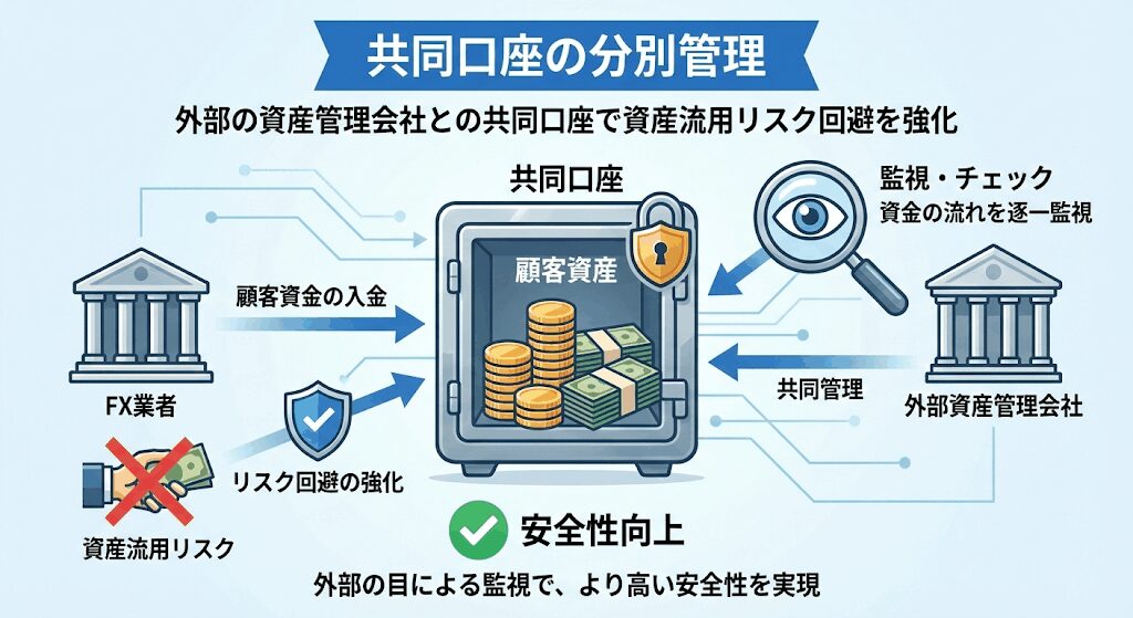 分別管理のうち、共同口座による分別管理という資産管理方法があります。