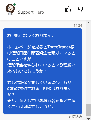 ThreeTraerは顧客資金を分別管理していますが、信託保全はしていません。