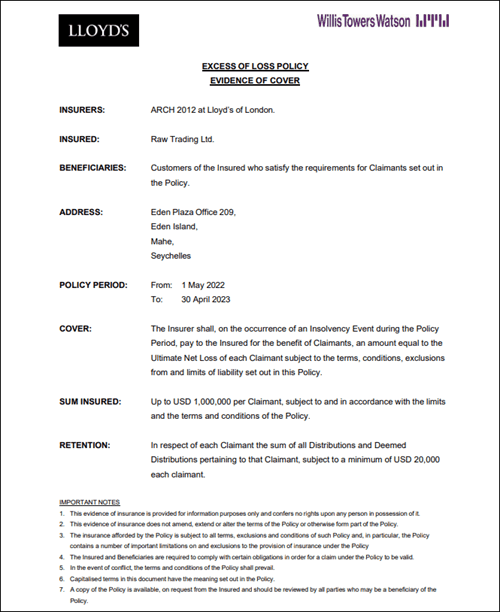 IC MarketesではWillis Towers Watsonという世界的大手の保険会社で超過損失補償保険に加入しています。