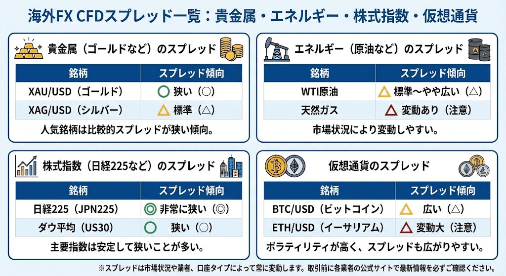 雇用統計やFOMCなどの重要指標の前後は、ゴールドや原油、仮想通貨CFDのスプレッドも大きく動きます。
