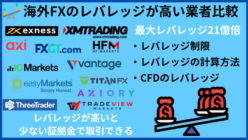 レバレッジ 海外FXの最大レバレッジが高いおすすめ業者比較 海外FXのレバレッジを比較して行きます。海外FXの最大レバレッジ(1000倍・3000倍・888倍)やレバレッジの計算方法、レバレッジ規制や制限がかかる条件。またCFD銘柄のレバレッジも詳しく紹介して行きます。 2025.10.10 レバレッジ