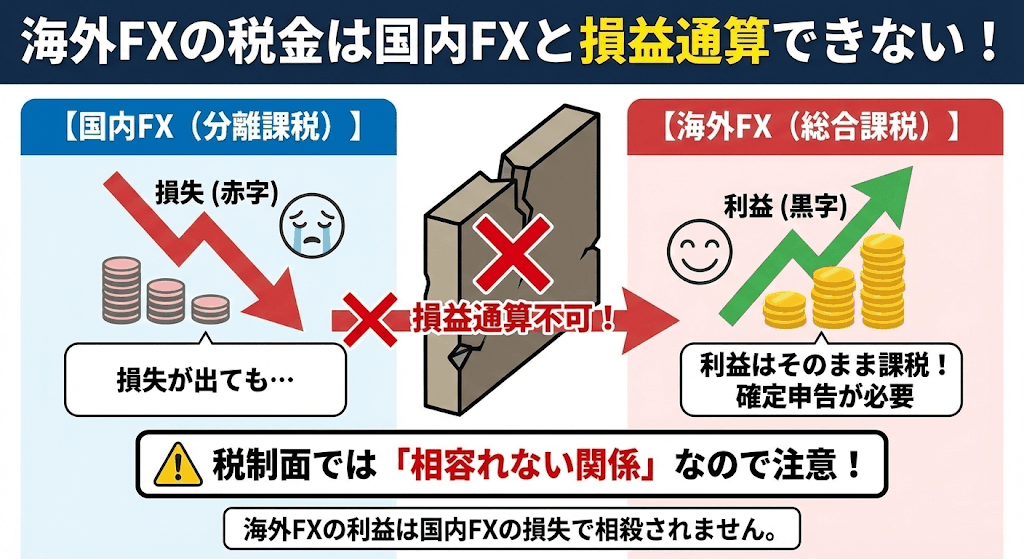 海外FXの税金は国内FXと損益通算できない