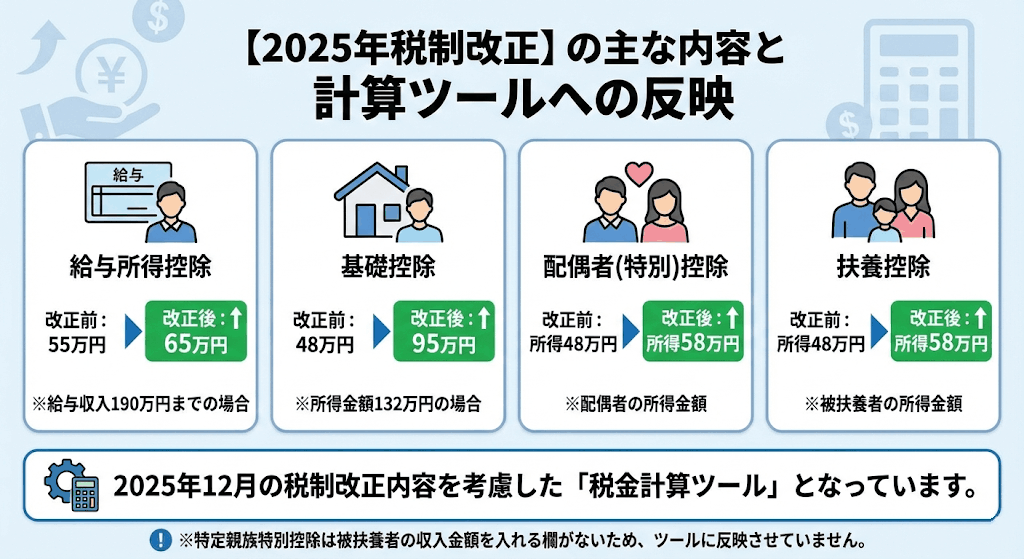 2025年12月に税制改正があり、その内容を考慮した税金計算ツールになっています。