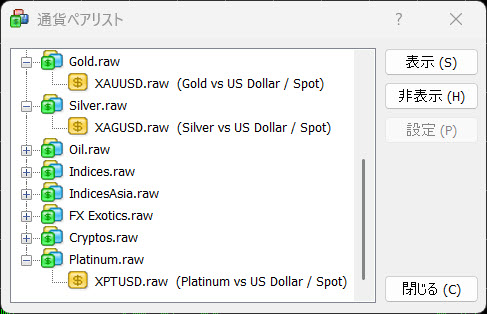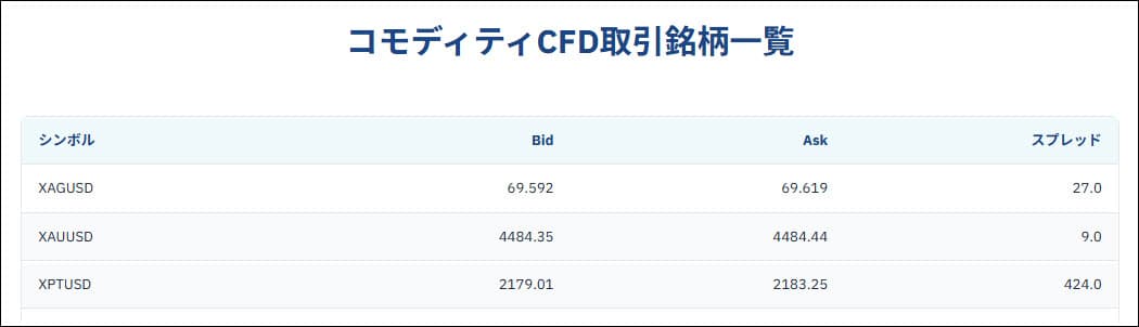 ゴールドやシルバーなどの貴金属のスプレッドです。
