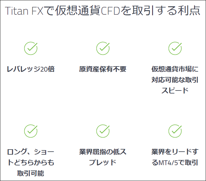 TitanFXの仮想通貨取引のレバレッジ・スプレッドなど取引条件について紹介して来ました。
