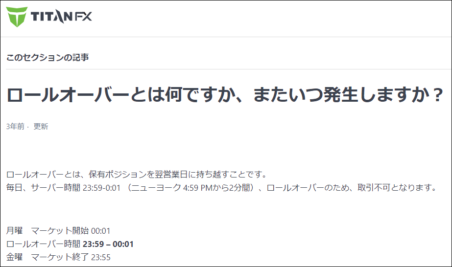 TitanFXのスワップポイントが付与されるタイミングは朝方の「ロールオーバー」時間となります。