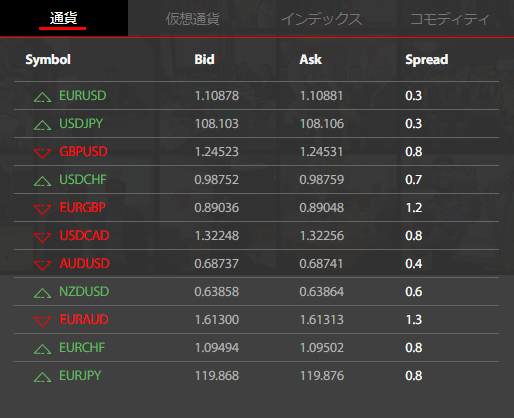 • Tradeviewの全通貨ペアのスプレッドが分かる