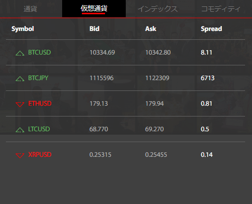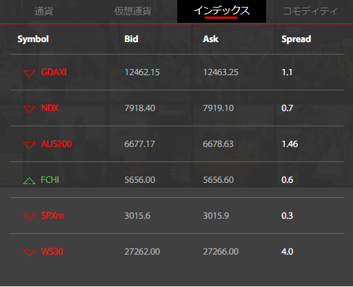 スプレッドの横にカッコ()が付いているものは、カッコ内が「スプレッドのみ」、カッコの左側は「スプレッド+取引手数料」となります。
