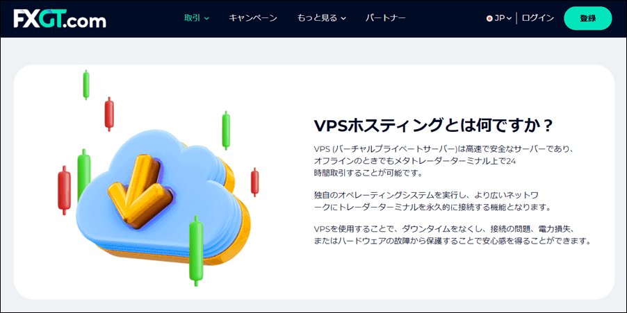 FXGTのVPSはMetaQuotes社のVPSを無料で使うことができ、FXGTのサーバーに近い環境でトレードすることができます。