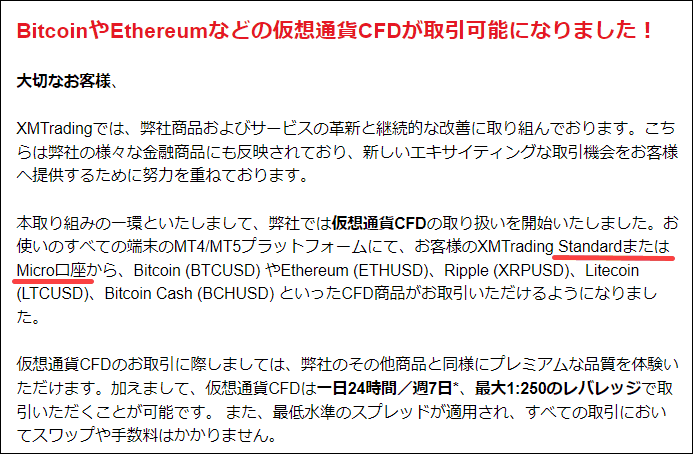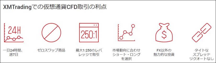 XMの公式サイトに仮想通貨取引の注意点が載っています。