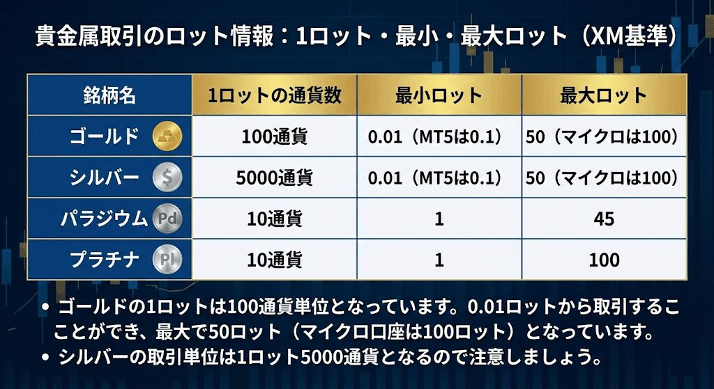 ゴールドの1ロットは100通貨単位となっています。