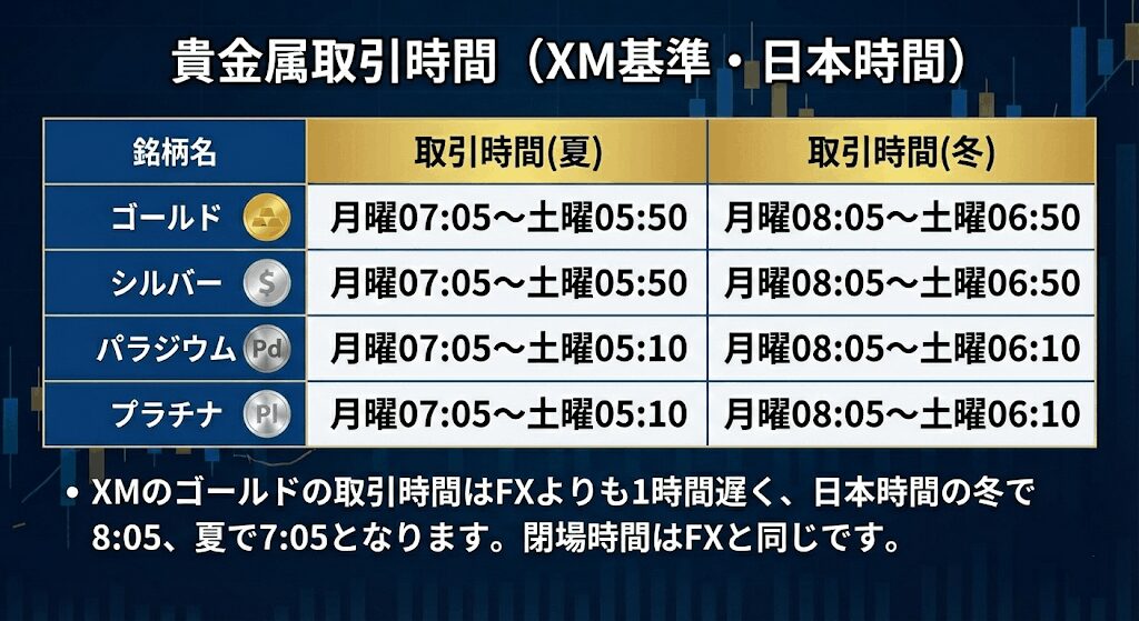| パラジウム | 月曜07:05~土曜05:10 | 月曜08:05~土曜06:10 |