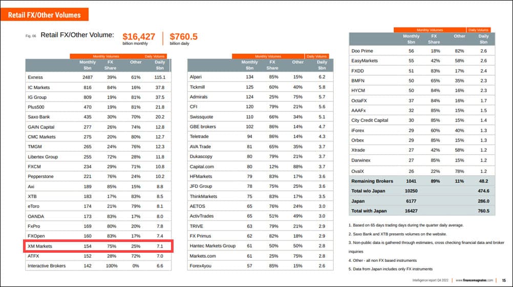 Finance Magnates Intelligenceという海外の金融レポートによると、XMは世界で18位の取引量の会社になります。