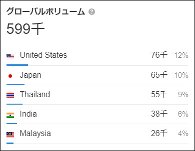 XMがどの国で検索されているのか「検索ツール」で調べてみると、アメリカや日本、タイ、インドの利用者が多いようです。