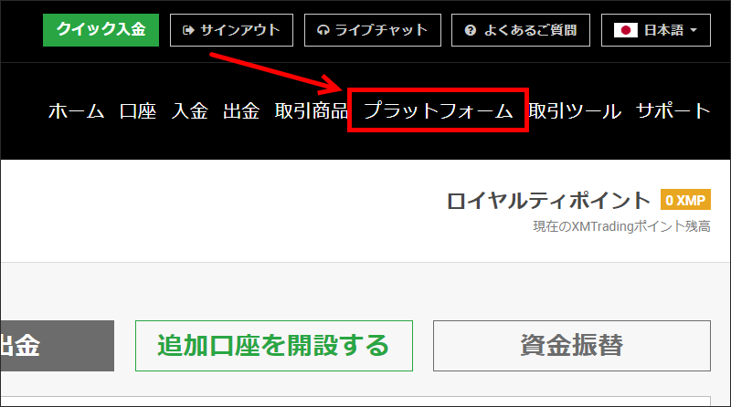 Mac版のダウンロードは、まずはXMの公式サイトからログインしてマイページに行きます。