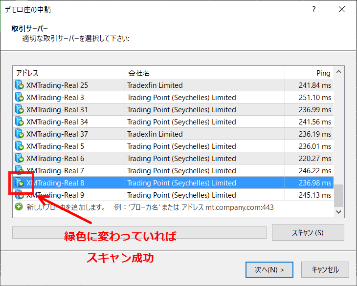 サーバー名が無い時はMT4から再スキャンをすれば表示されますか?