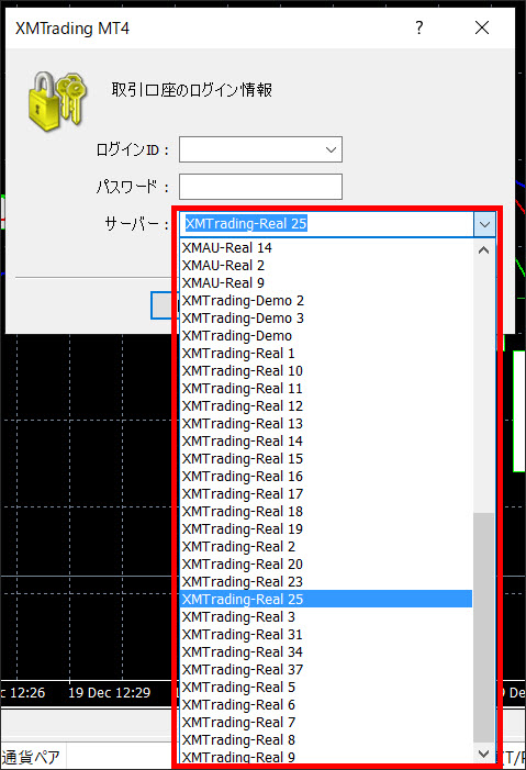 日本の場合は「XMTrading」なので、サーバー名を間違えないようにしましょう。