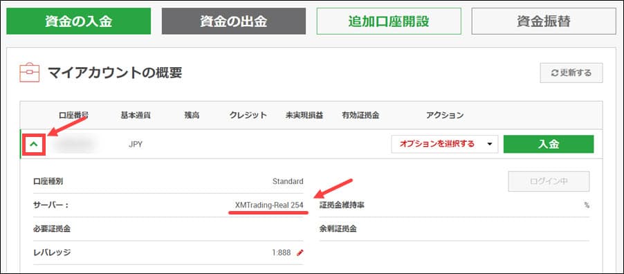 XMの会員ページでも口座名の箇所からサーバー名が確認可能ですので、ログインして確認しましょう。