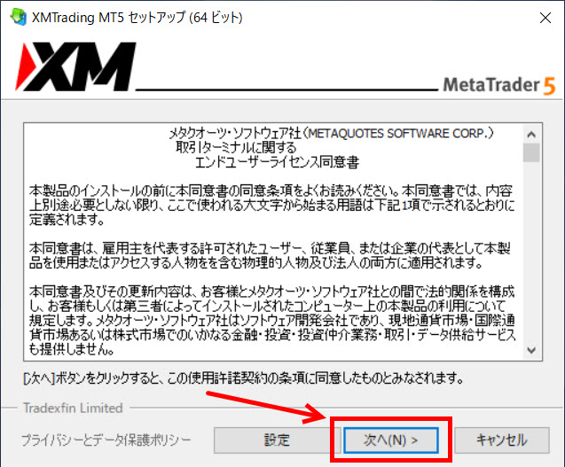 MT5のセットアップで次へを選択