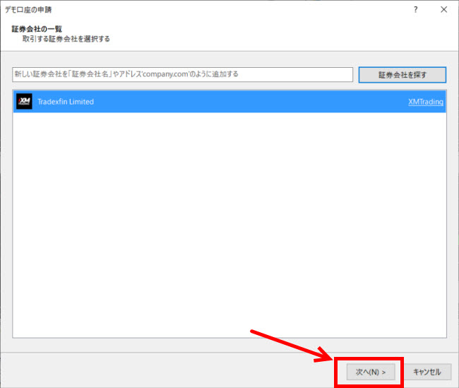 「Tradexfin Limited」を選択します。(すぐ下に小さくXM Tradingと書いてあります)