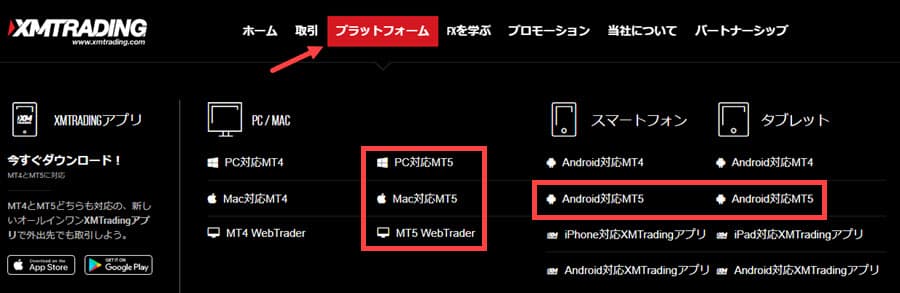 プラットフォームからMT5をダウンロード