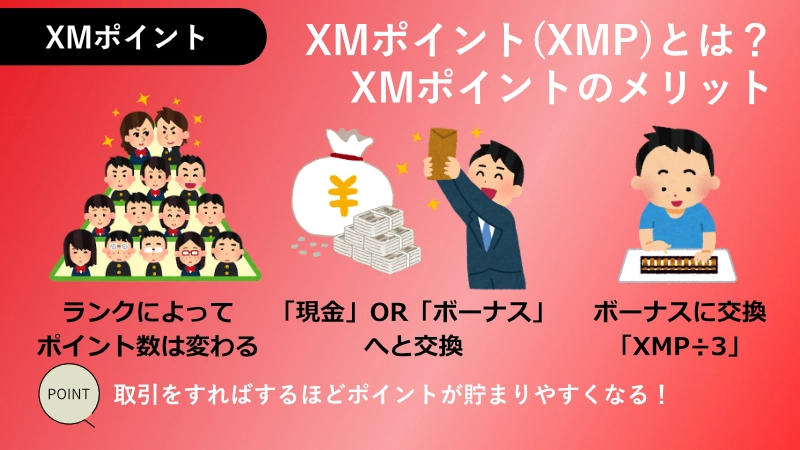 XMにはXMポイント(XMP)というロイヤルティプログラムがあり、ポイントを貯めてボーナスや現金に交換することができます。