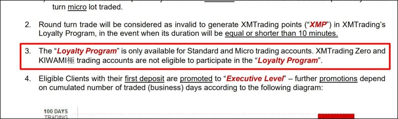 XMの規約に書かれている通り、ゼロ口座とKIWAMI極口座ではロイヤルティプログラムに参加することができません。