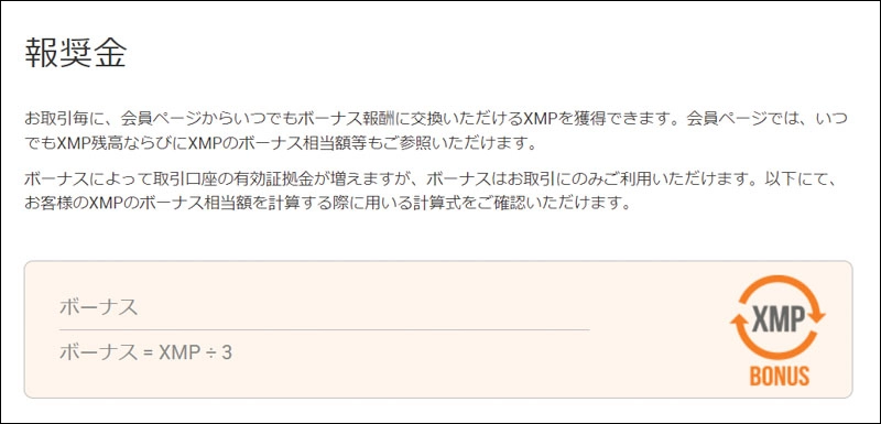 まず、XMPとはXMTradingポイントの略で、「時間と共に蓄積され取引ボーナスに交換することができるポイント」です。