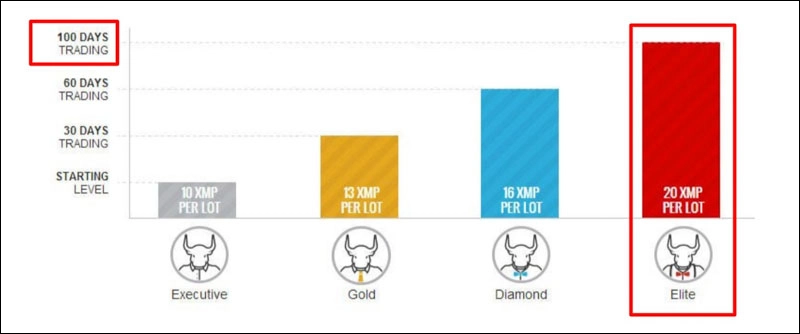 スタンダードロットを一往復取引する毎に、現在のロイヤルティステータスによって10、13、16もしくは20XMPをお受け取り頂けます。