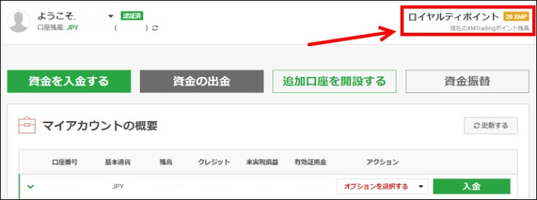 (スタンダード口座かマイクロ口座) - XMポイントをボーナスに交換してXMポイント専用口座に入れる