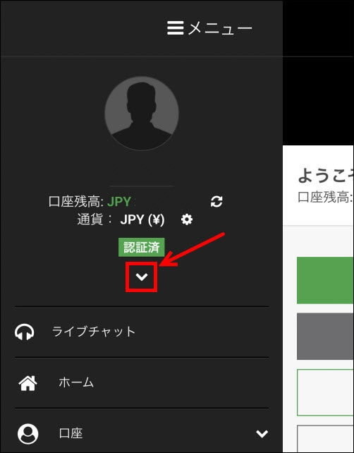「認証済」の下にある「下矢印」をクリックするとさらにメニューが開きます。