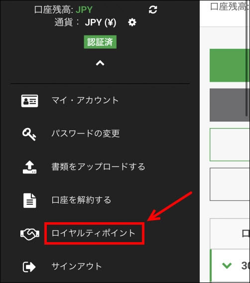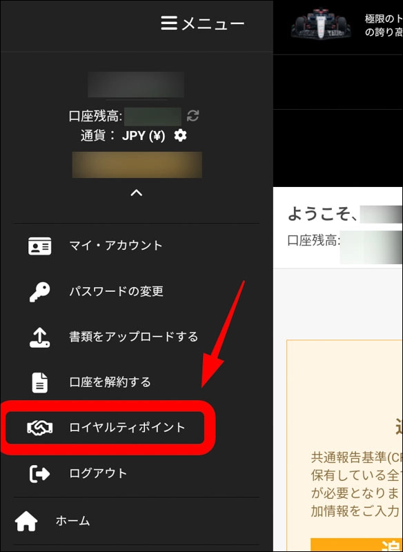 ログアウトという部分の上の腕にロイヤルティーポイントというボタンが現れます。