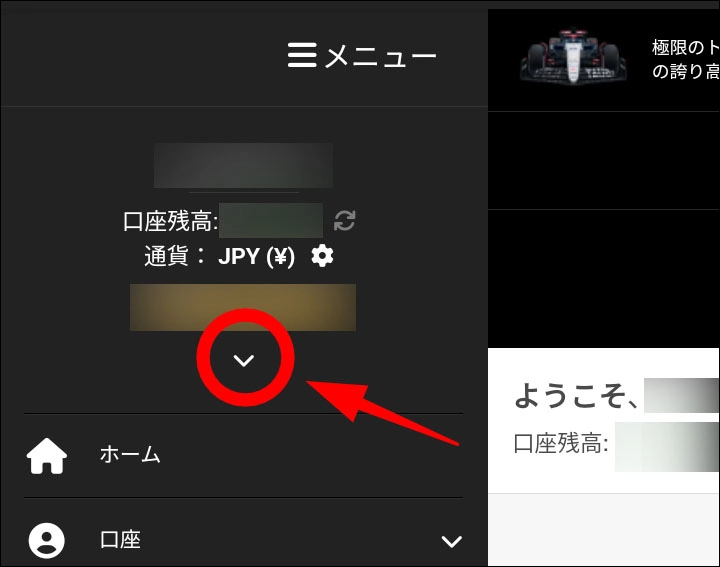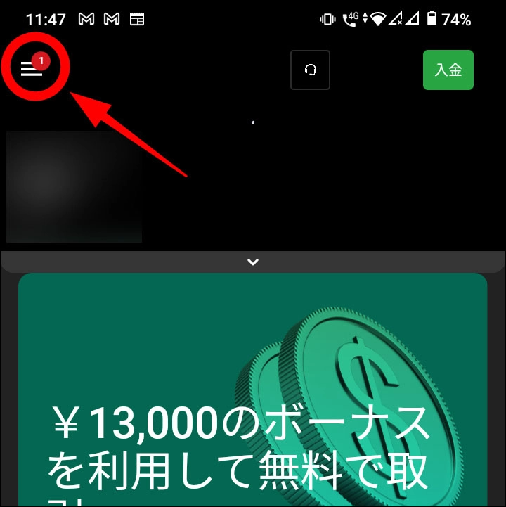 スマホの場合は少し面倒ですが、ログインしたら左上のメニューバーを開きます。