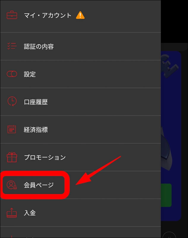 会員ページをタップします。