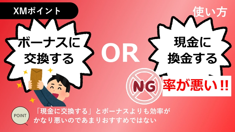 XMポイントの使い方は「ボーナスに交換する」か「現金に換金する」かの2種類があります。