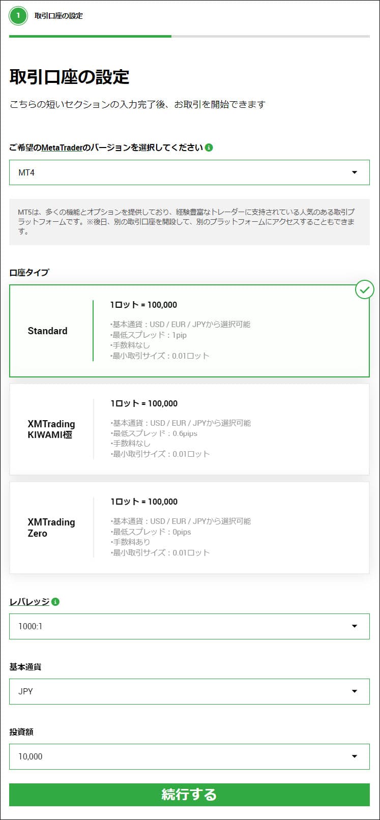 口座タイプはスタンダード口座とゼロ口座、KIWAMI極口座(MT4のみ)から選択できます。