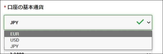 口座の基本通貨はJPY(日本円)がおすすめです。