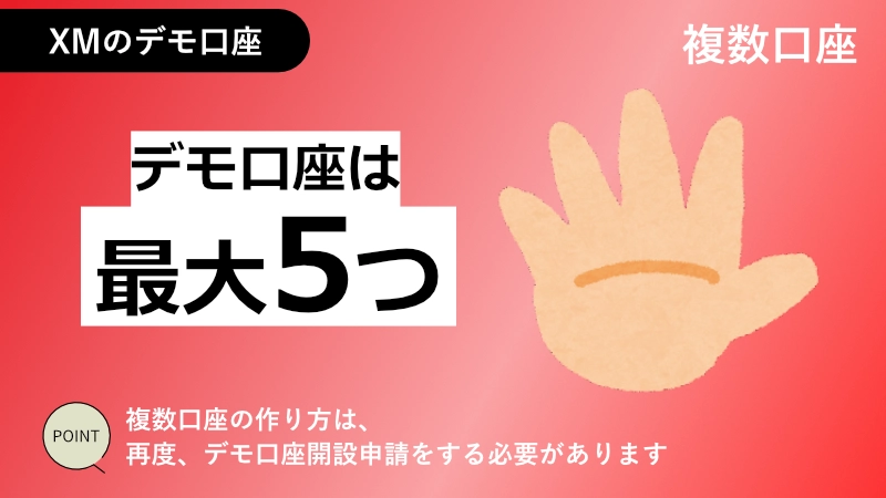XMのデモ口座は「最大5つ」まで作ることができます。