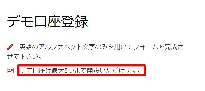 複数口座の作り方は、「再度、デモ口座開設申請をする」必要があるので、面倒ですが、入力し直しましょう。