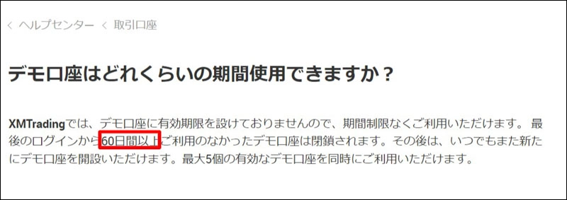 - XMのデモ口座は最終ログインから60日で自然に閉鎖します。