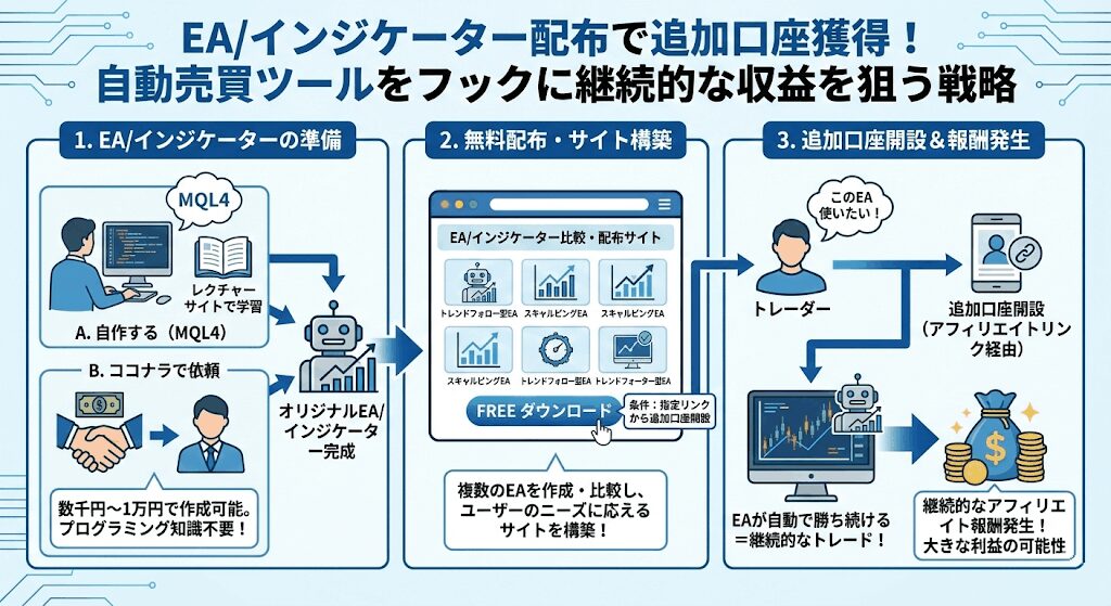 MT4 EA(Expert Advisor)の無料配布サイトはEAを無料で配布する代わりにトレーダー登録をしてもって稼ぎを得ています。